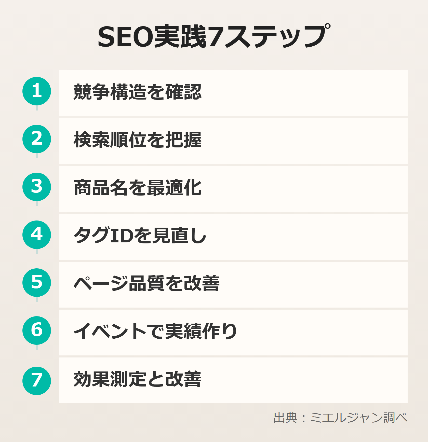 ここまでの内容を踏まえて、楽天SEOに取り組む際の実践ステップを整理します。